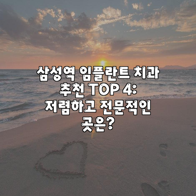 치아 건강은 우리의 삶의 질과 깊은 연관이 있습니다. 특히, 잃어버린 치아를 대체할 수 있는 임플란트 치료는 효과적으로 삶의 질을 개선할 수 있는 방법이에요. 삼성역은 특히 많은 임플란트 치과가 밀집해 있는 지역으로, 저렴하면서도 신뢰할 수 있는 치료를 제공하는 곳들이 많답니다. 이번 글에서는 삼성역에서 추천하는 임플란트 치과 TOP 4를 소개하며, 각 치과의 특징과 이벤트 정보에 대해 자세히 알아보도록 할게요.