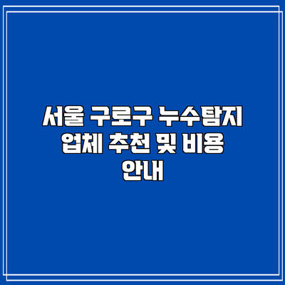 A3: 서울 구로구의 추천 업체로는 바로누수탐지, 성남 누수 설비업체, 일등누수탐지 등이 있으며, 이들 모두 신뢰할 수 있는 서비스와 다양한 특징을 제공합니다.
