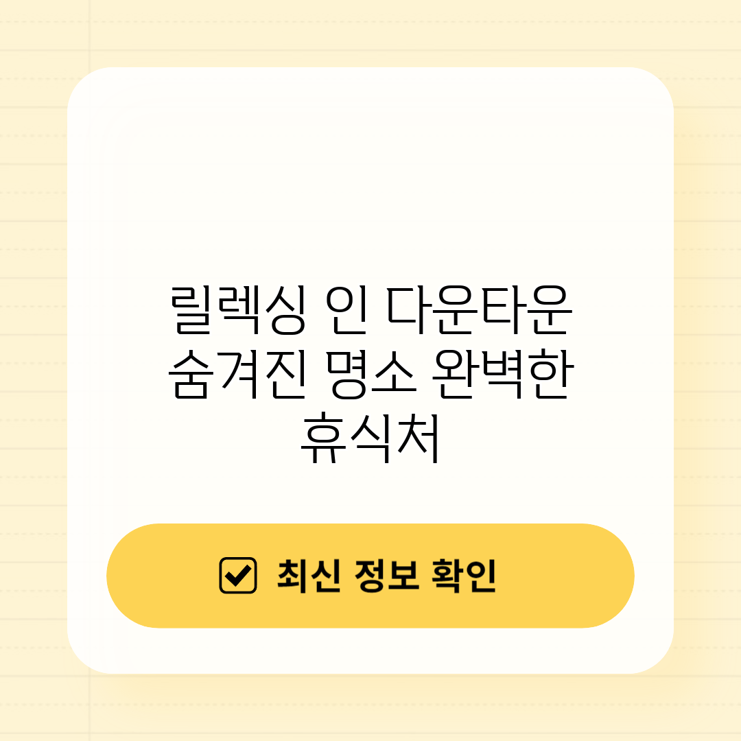 릴렉싱 인 다운타운에서의 휴식은 단순한 쉼이 아닌 진정한 재충전의 시간이 될 거예요. 다음 여행에서는 꼭 이곳을 고려해보세요!