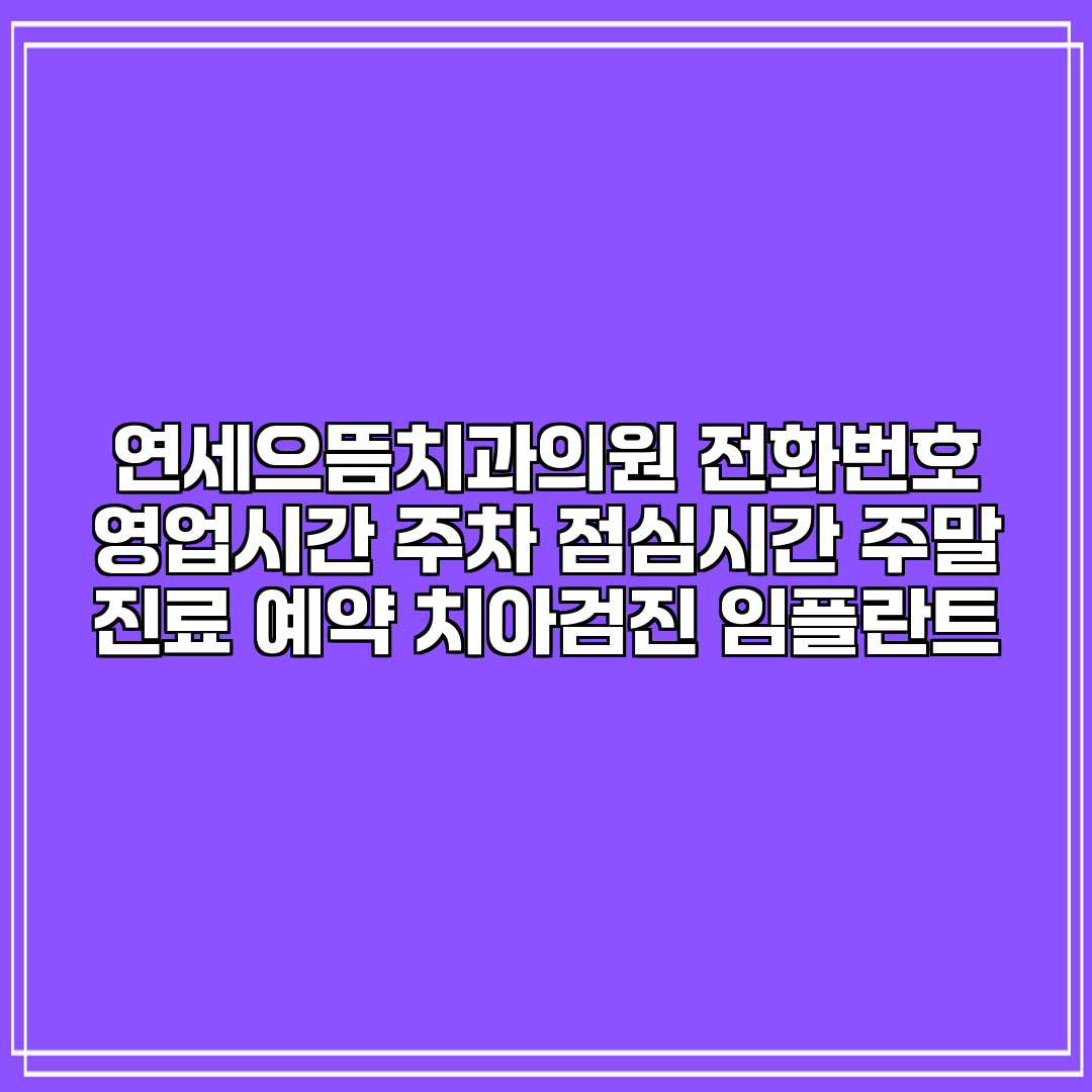 연세으뜸치과의원 전화번호 영업시간 주차 점심시간 주말 진료 예약 치아검진 임플란트
