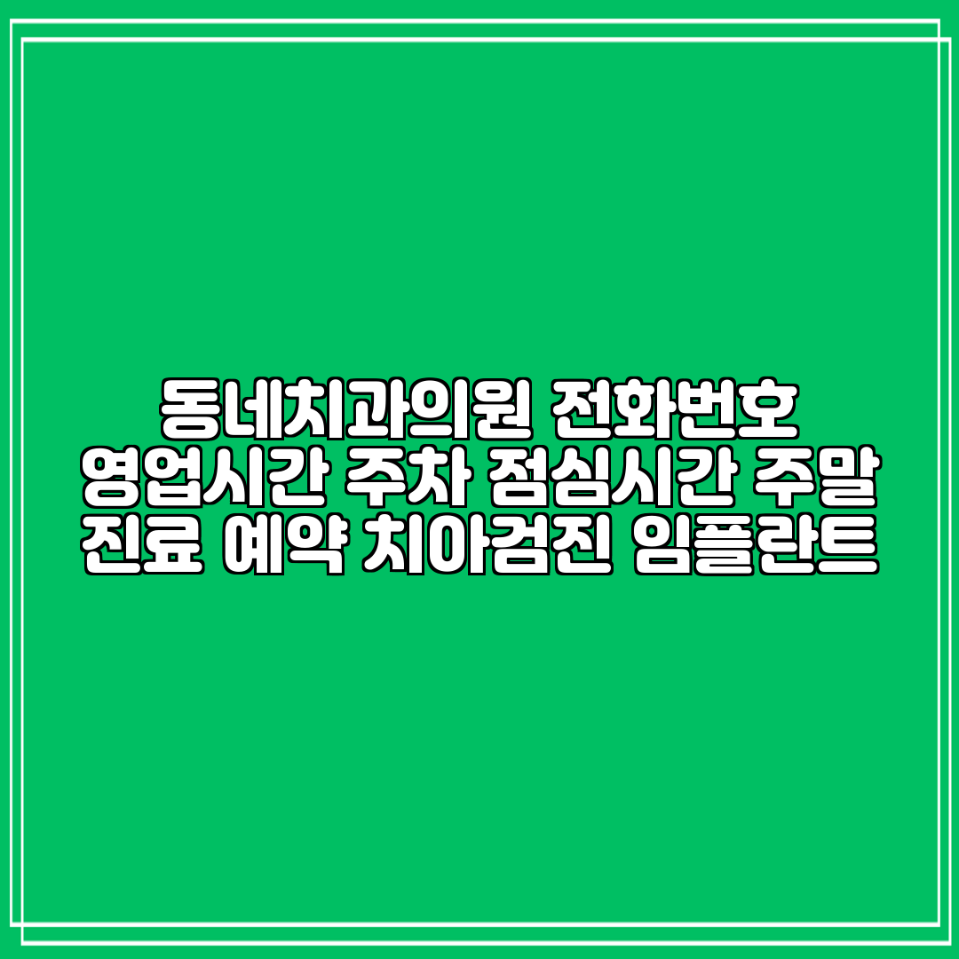 A: 동네치과의원의 전화번호는 해당 치과의 공식 웹사이트나 네이버, 다음 같은 포털 사이트에서 검색하여 확인할 수 있습니다. 또한, 지역 주민 커뮤니티 또는 구글 맵에서도 정보를 찾을 수 있습니다.