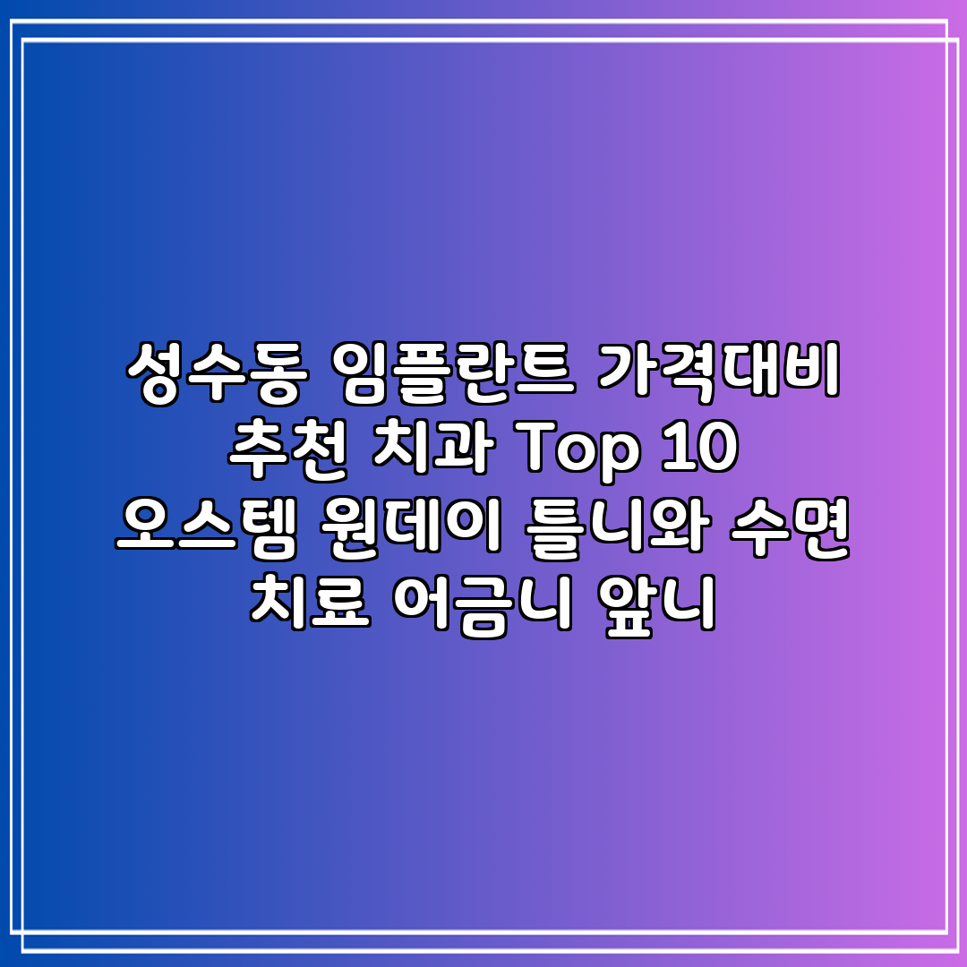 💡 성수동에서 최고의 임플란트 가격을 알아보세요! 💡