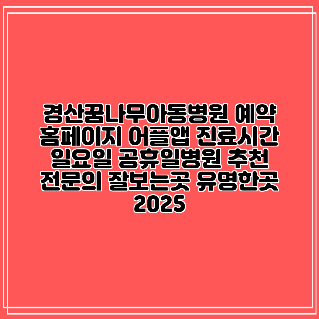 💡 경산꿈나무아동병원의 진료시간과 예약 방법을 알아보세요. 💡