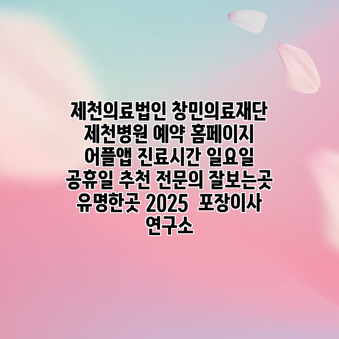 제천의료법인 창민의료재단 제천병원 예약 홈페이지 어플앱 진료시간 일요일 공휴일 추천 전문의 잘보는곳 유명한곳 2025 포장이사 연구소