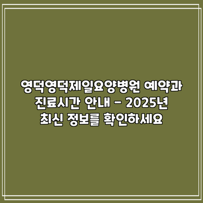 영덕영덕제일요양병원 예약과 진료시간 안내 – 2025년 최신 정보를 확인하세요